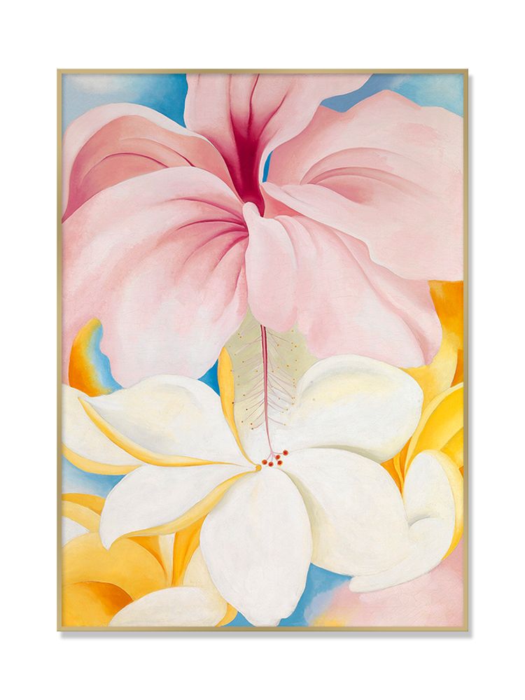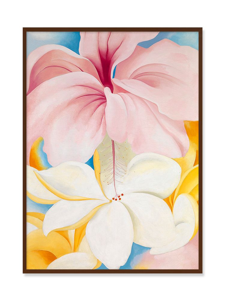 Georgia O'Keeffe는 1939년 마우이, 오아후, 하와이, 카우아이를 방문하며 섬들의 극적인 협곡, 폭포, 그리고 열대 꽃들을 그렸고, 플라메리아&히비스커스를 완성했습니다.