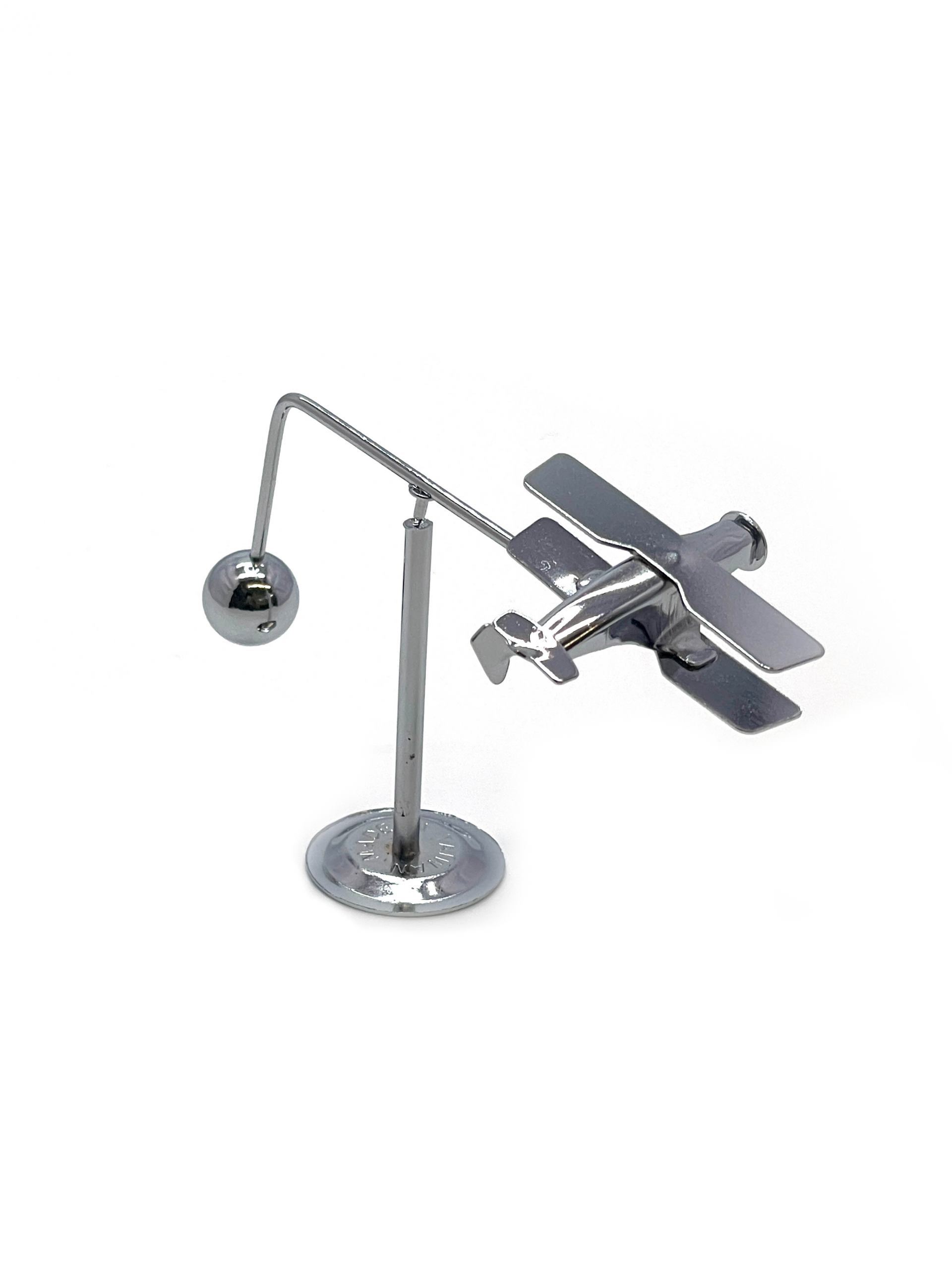 2부분으로 나누어져 있으며 받침대 위에 중심축을 올려놓으면 균형을 이루고 비행기가 흔들리며 돕니다.