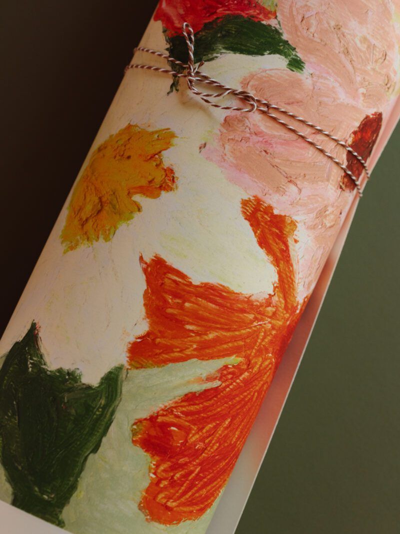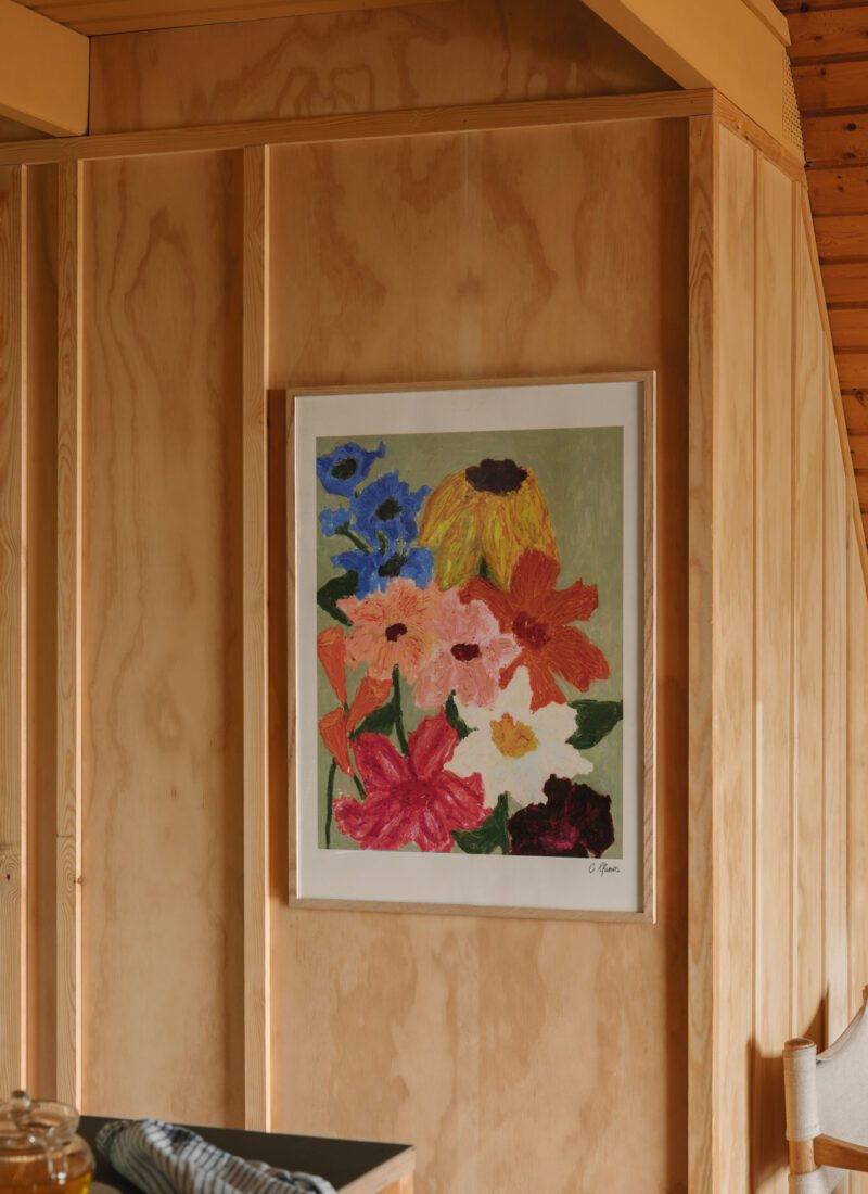 'Flowers on Sage Green'은 다양한 색상의 꽃다발을 세이지 그린 배경 위에 배치하여 밝고 생동감 있는 분위기를 자아냅니다.