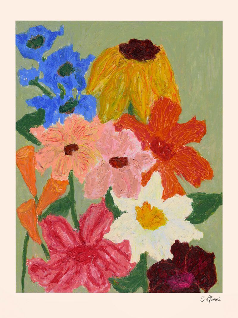 Carla Llanos - Flowers on Sage Green