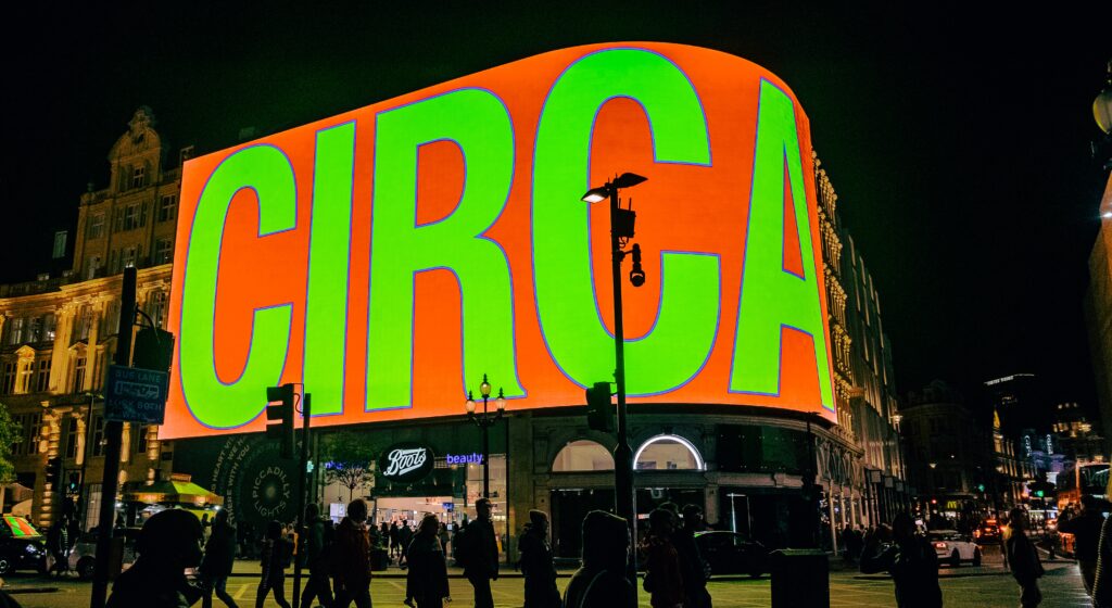 where his neon works illuminated iconic global screens, including Piccadilly Lights in London, while reflecting Soho’s rich legacy of neon-lit allure.