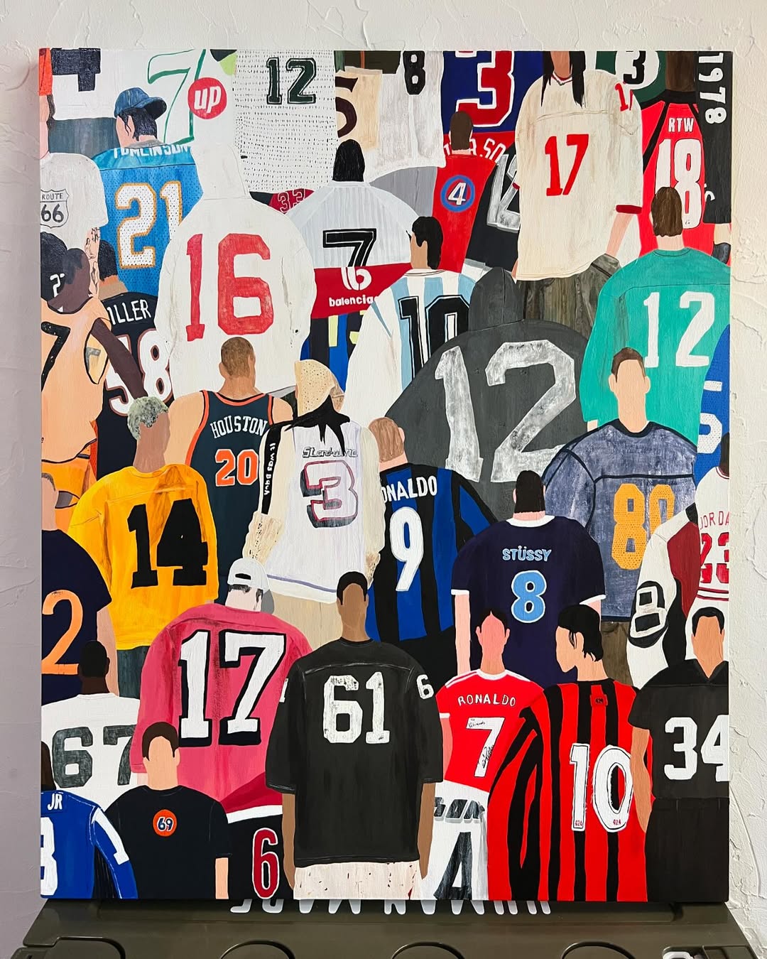 The artist works with fashion and clothing as central themes. By borrowing graphics from actual garments and incorporating elements from various brands,