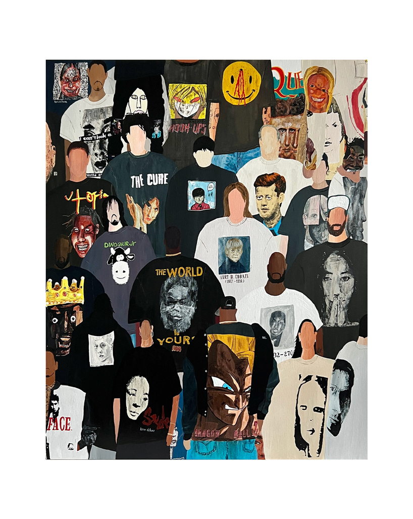 The artist works with fashion and clothing as central themes. By borrowing graphics from actual garments and incorporating elements from various brands,