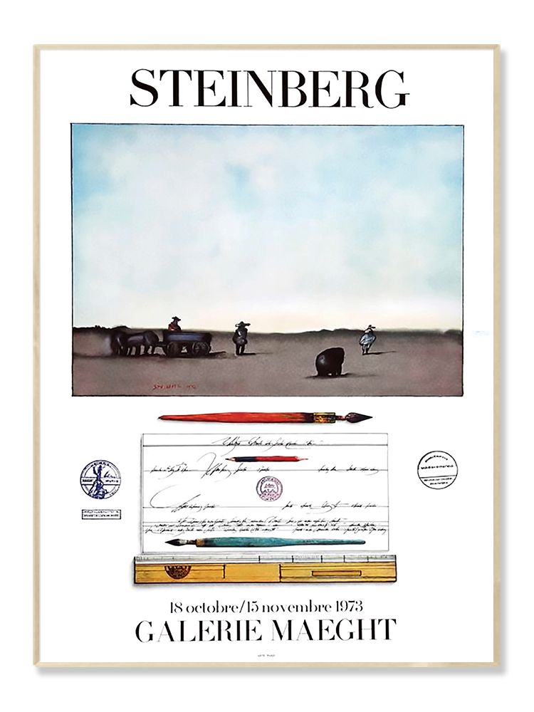 이 포스터는 1973년 가을, 파리의 Galerie Maeght에서 열린 사울 스타인버그 개인전을 기념하여 공식 발행된 전시 포스터입니다.