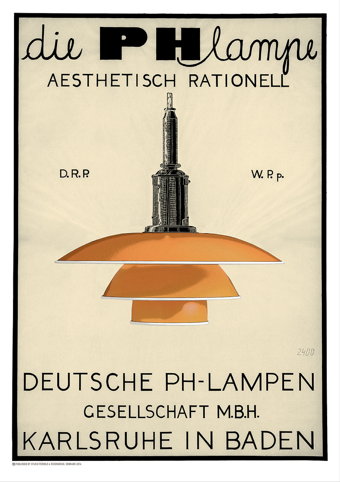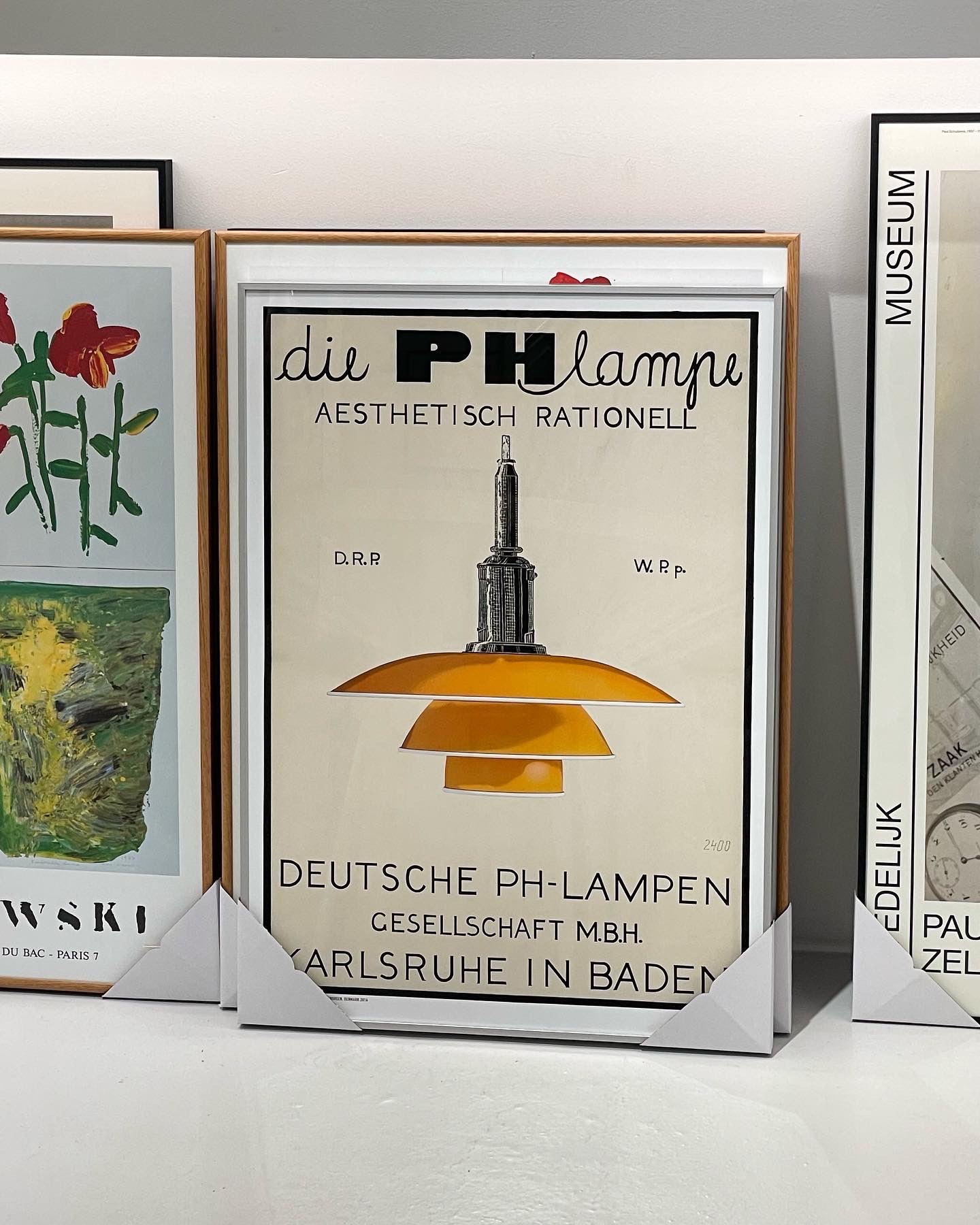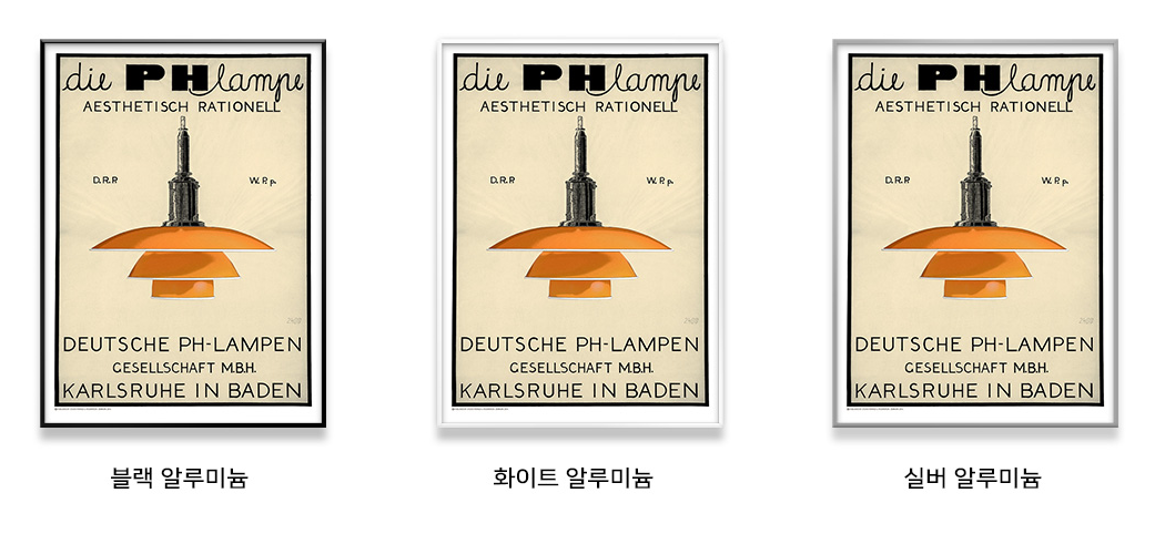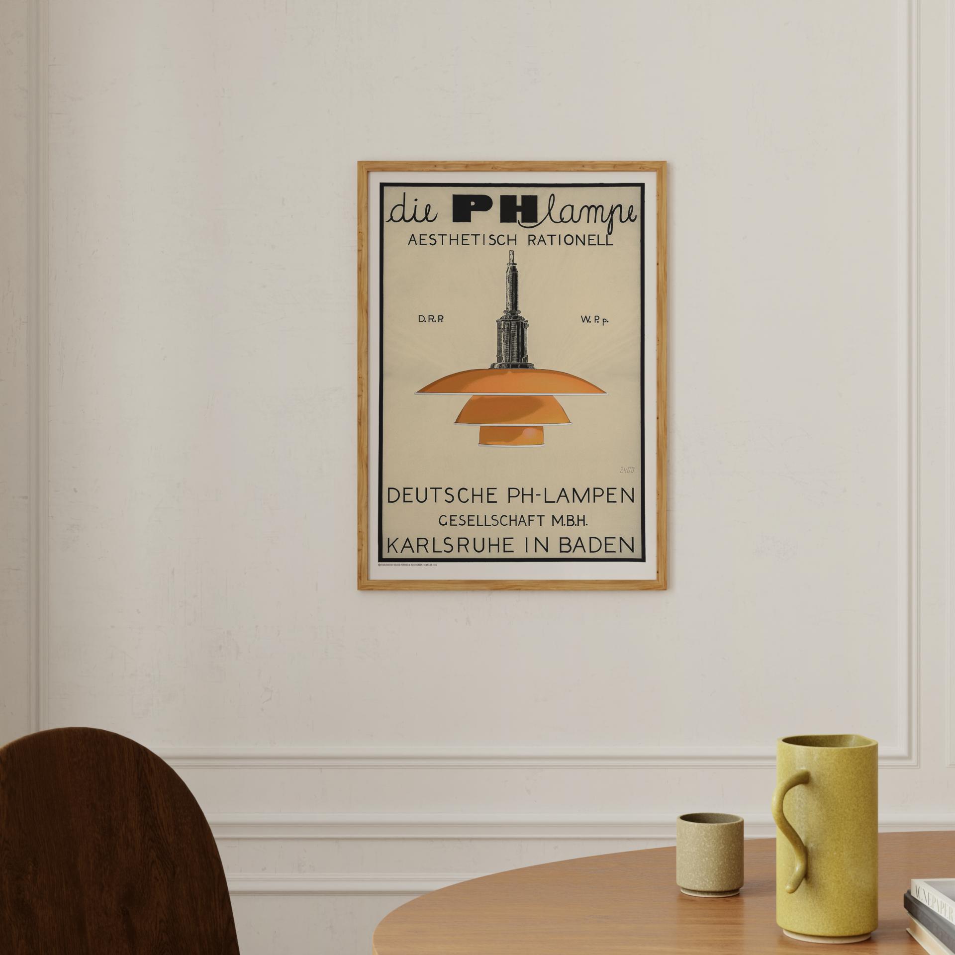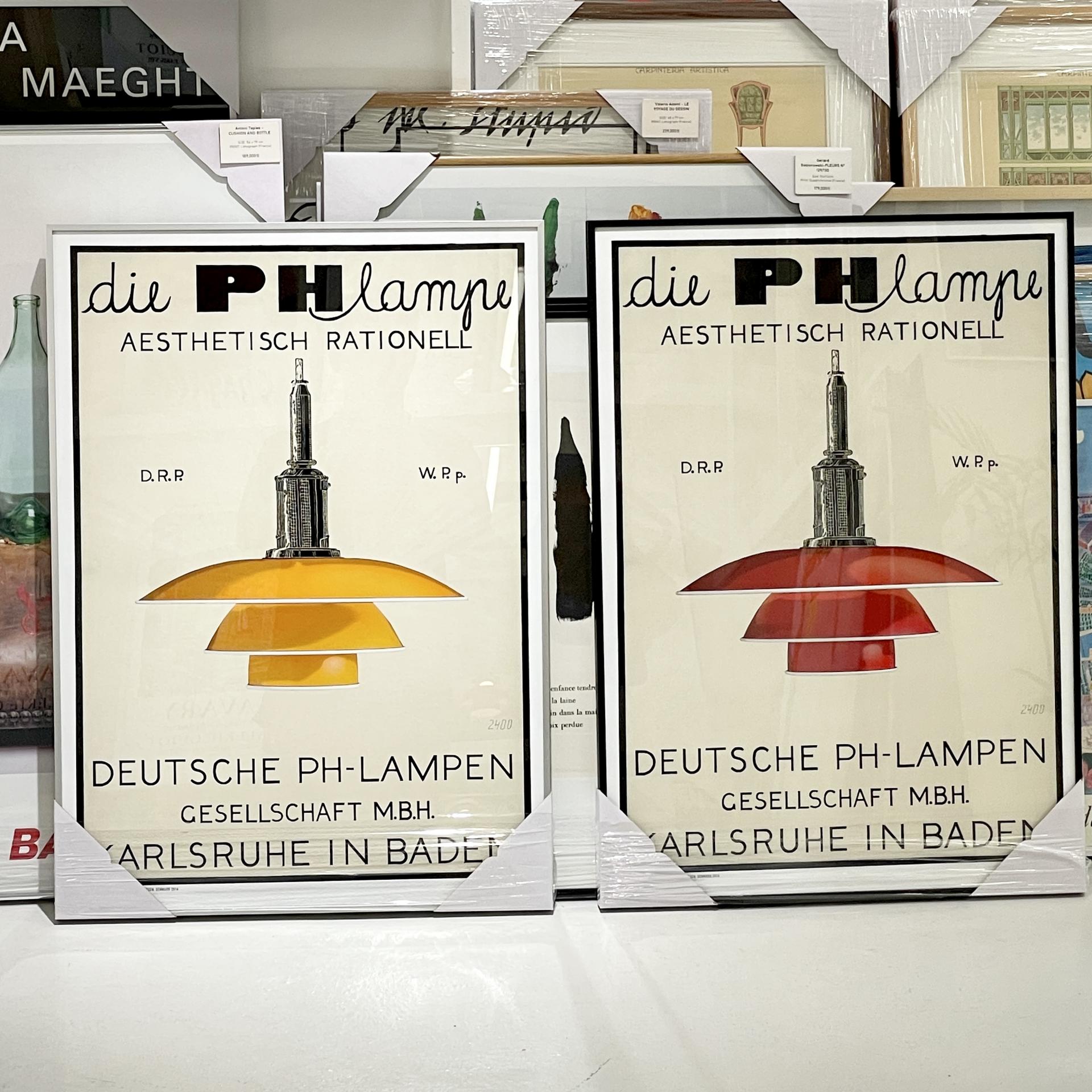 'PH 3½-3 '램프 포스터에는 이 아이코닉한 형태가 선명하게 담겨 있으며, 옐로우 · 그린 · 화이트 · 레드 네 가지 컬러와