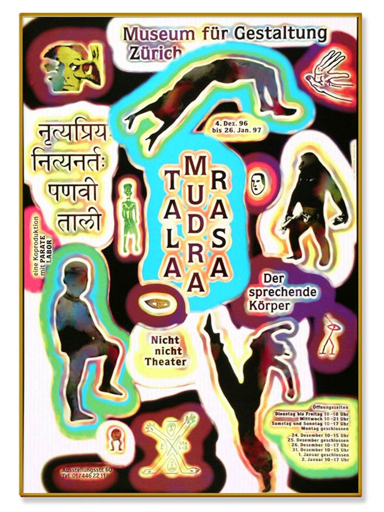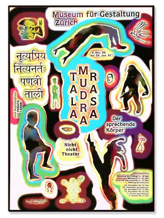스위스 그래픽 디자이너 랄프 슈라이보겔(Ralph Schraivogel)의 '말하는 몸'이라는 뜻을 지닌 <Tala Mudra Rasa> 그래픽 디자인 포스터입니다.