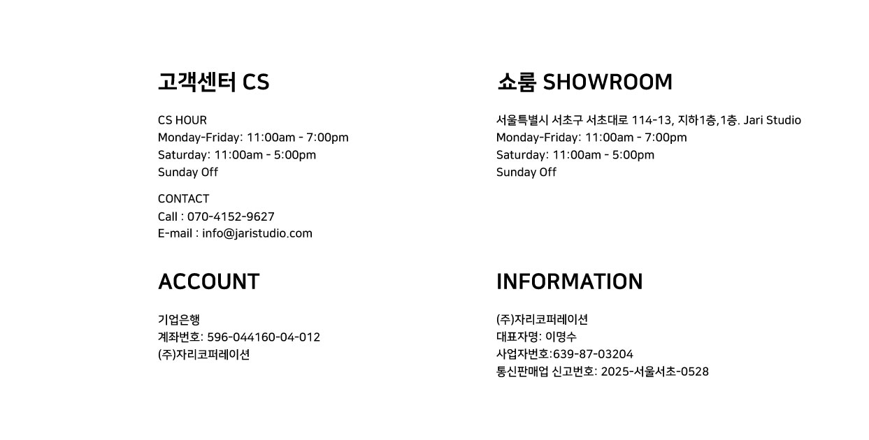 - 상품에 하자가 있을 시에는 100% 교환 및 반품 가능하며 배송료 부담은 자리 스튜디오가 합니다.