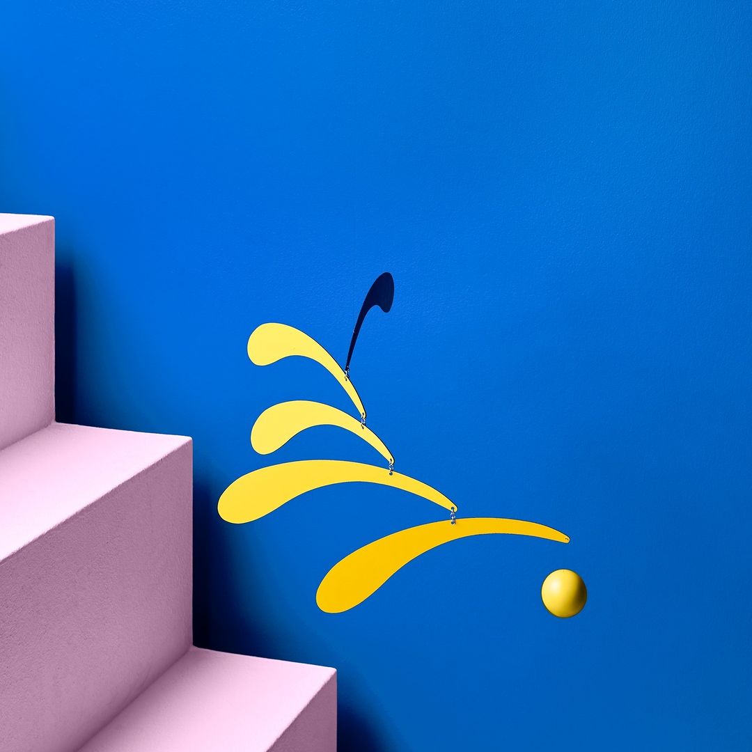 키네틱 아트의 원조 알렉산더 칼더에 의해 창조된 모빌은 여러 부품이 연속적으로 연결되어 균형을 이루며 움직이고 다양한 형상을 보여주는 아트 모빌입니다.